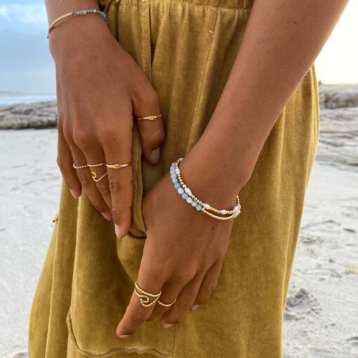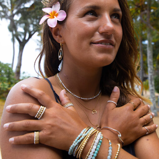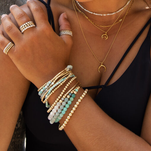 The result is a high-quality material that has the charm and allure of real gold but at an affordable price. It is not the same as solid gold since the core of the material is brass, but it is still the best alternative, in our opinion, for high-quality, long-lasting, waterproof gold jewelry.