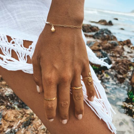 The result is a high-quality material that has the charm and allure of real gold but at an affordable price. It is not the same as solid gold since the core of the material is brass, but it is still the best alternative, in our opinion, for high-quality, long-lasting, waterproof gold jewelry.