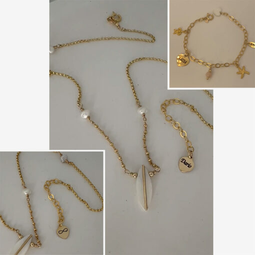 Some pieces of our jewelry e.g pendant chains are made of 925 Sterling Silver with 24 karat gold plating. This plating consists of a 2-micron thick layer of gold, making it much more durable than conventional standard plating.
