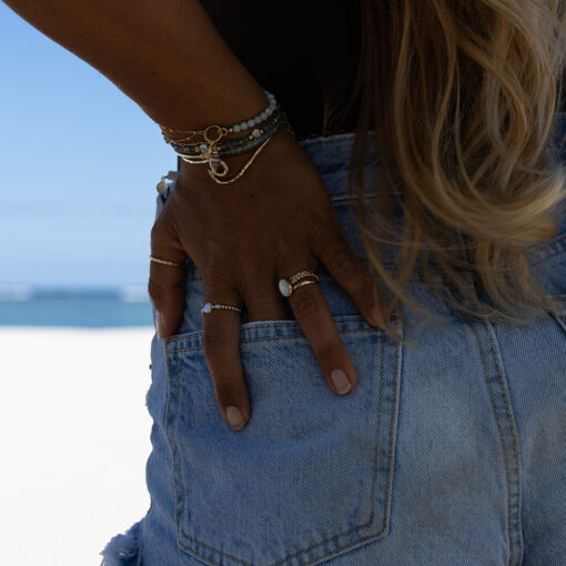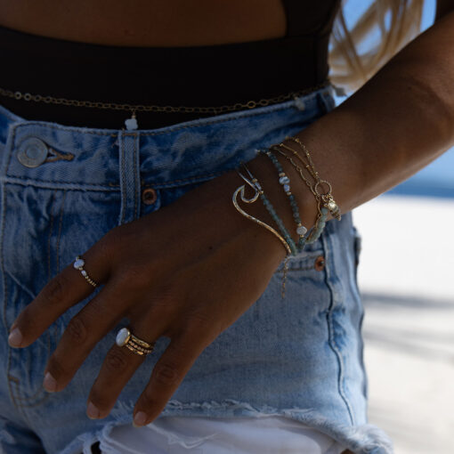 The result is a high-quality material that has the charm and allure of real gold but at an affordable price. It is not the same as solid gold since the core of the material is brass, but it is still the best alternative, in our opinion, for high-quality, long-lasting, waterproof gold jewelry.