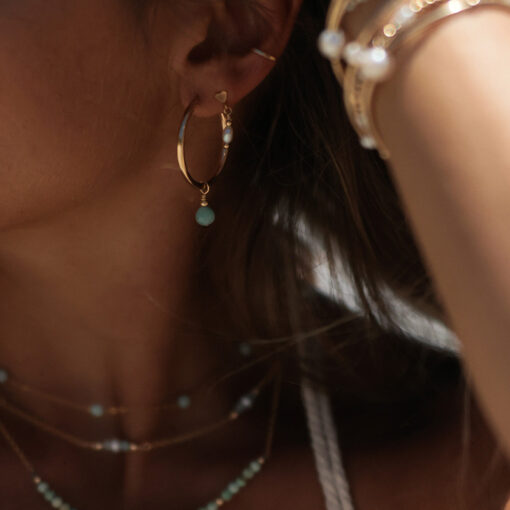 The result is a high-quality material that has the charm and allure of real gold but at an affordable price. It is not the same as solid gold since the core of the material is brass, but it is still the best alternative, in our opinion, for high-quality, long-lasting, waterproof gold jewelry.