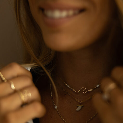 The result is a high-quality material that has the charm and allure of real gold but at an affordable price. It is not the same as solid gold since the core of the material is brass, but it is still the best alternative, in our opinion, for high-quality, long-lasting, waterproof gold jewelry.