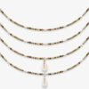 Material: agate stones; natural shaped freshwater pearls; 925 sterling silver or 14 carat/ 20 gold filled, cowrie shell