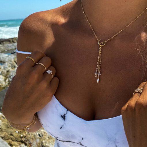 The result is a high-quality material that has the charm and allure of real gold but at an affordable price. It is not the same as solid gold since the core of the material is brass, but it is still the best alternative, in our opinion, for high-quality, long-lasting, waterproof gold jewelry.