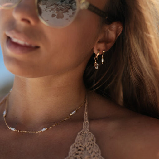 The result is a high-quality material that has the charm and allure of real gold but at an affordable price. It is not the same as solid gold since the core of the material is brass, but it is still the best alternative, in our opinion, for high-quality, long-lasting, waterproof gold jewelry.