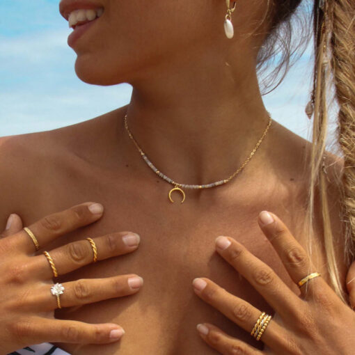 The result is a high-quality material that has the charm and allure of real gold but at an affordable price. It is not the same as solid gold since the core of the material is brass, but it is still the best alternative, in our opinion, for high-quality, long-lasting, waterproof gold jewelry.