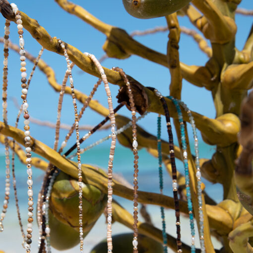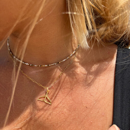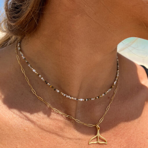 TINY TERRA – it is the little sister of our Terra necklace and reflects for us the diversity of our earth. She carries the color of the stones, the earth, the sand, the grasses and fields. Natural tones simply always match and create the most beautiful combination. The little stones shine in all their variety and beauty around your neck and highlight any natural look.