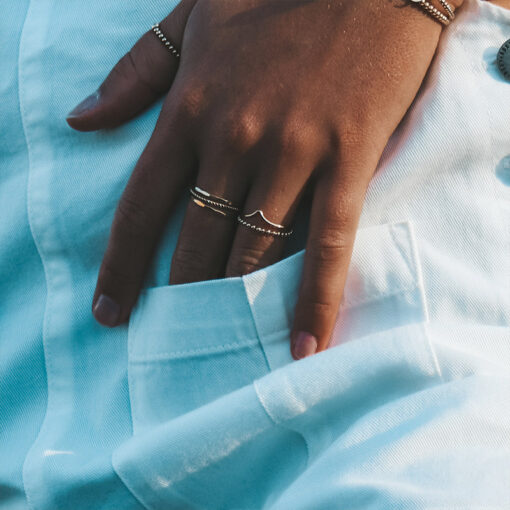 This ring, a piece for eternity, fine and light, surrounds your finger and shows YOUR ambition: Climb peaks, overcome valleys, the way is the goal.