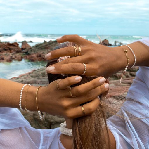 The result is a high-quality material that has the charm and allure of real gold but at an affordable price. It is not the same as solid gold since the core of the material is brass, but it is still the best alternative, in our opinion, for high-quality, long-lasting, waterproof gold jewelry.