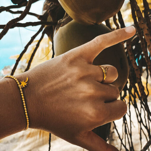 14 Karat/20 Gold Filled: Für uns das beste Material für alle, die Gold lieben, da es 100% wasserfest ist und deshalb auch dann seine Farbe nicht verliert, wenn du den Schmuck im Wasser trägst.