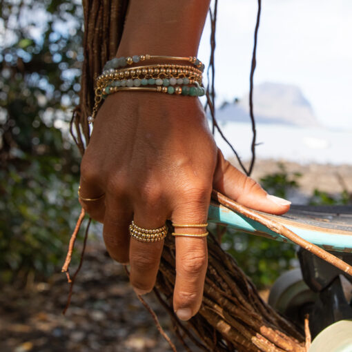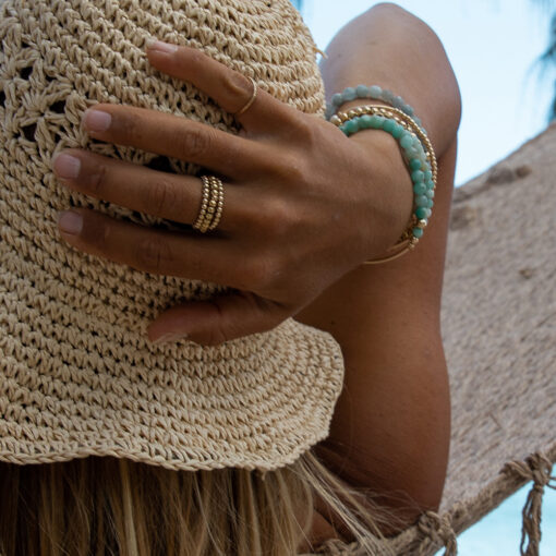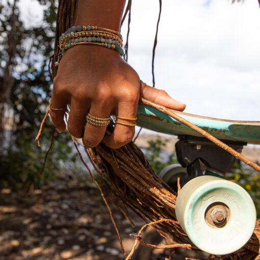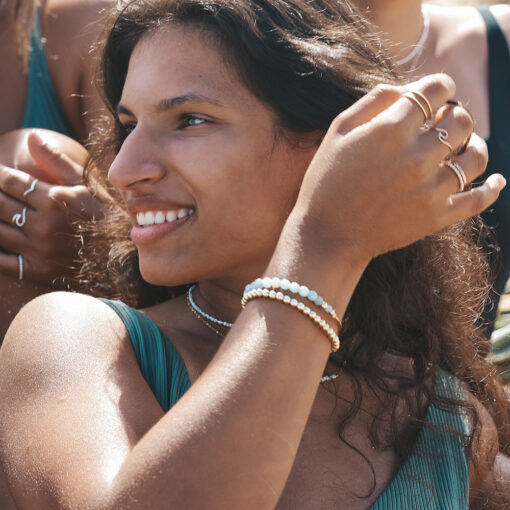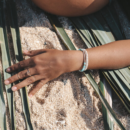 PARADISE – Dieses wunderschöne Armbändchen verkörpert all das, was du dir unter einem Paradis vorstellst. Die türkisblauen Steine erinnern dich an die traumhafteste Wasserfarbe, die du bisher gesehen hast. Sie lassen dich sofort vom Meer, dem Sprung ins kühle Nass und dem Gefühl von weißem Sandstrand unter deinen Füßen träumen.