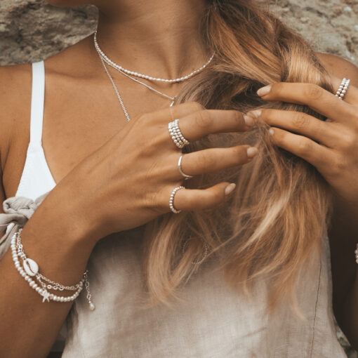 Unser Tipp: Wenn du den Schmuck im Wasser getragen hast oder er in Kontakt mit Schweiß war, dann trage ihn auch beim anschließenden Duschen. Am besten wäschst du ihn mit Duschgel und spülst ihn anschließend mit klarem Wasser ab. Indem du den Schmuck richtig pflegst, kannst du ihn in bestem Zustand halten, damit er lange Zeit schön und glänzend bleibt.