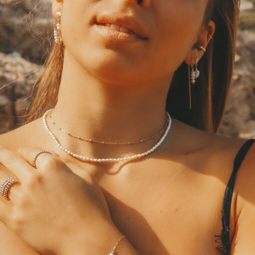 ANAHINA ist die Göttin des Wassers. Natürlich und federleicht legen sich die klitzekleinen glänzenden Süßwasserperlen um deinen Hals und schmücken dein Dekolleté auf eine dezente und blickfesselnde Weise.