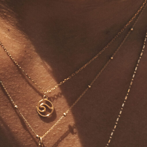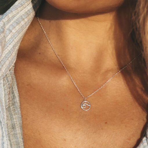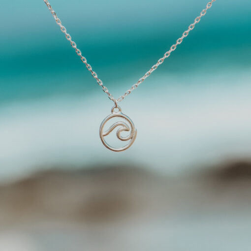 Die Kraft der riesigen Surferwelle Balis ist in einem kleinen runden Amulett eingefangen. Die kleine filigrane Welle folgt deinen Bewegungen, dreht sich im Wind und bleibt doch immer ganz nah bei dir.