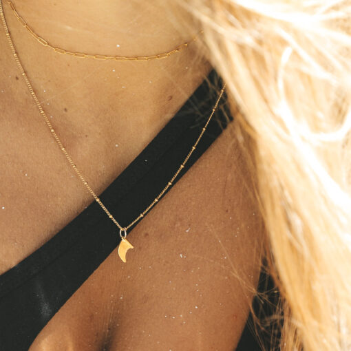 14 Karat/20 Gold Filled: Für uns das beste Material für alle, die Gold lieben, da es 100% wasserfest ist und deshalb auch dann seine Farbe nicht verliert, wenn du den Schmuck im Wasser trägst.