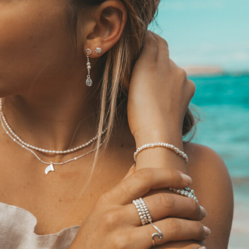 Unser Tipp: Wenn du den Schmuck im Wasser getragen hast oder er in Kontakt mit Schweiß war, dann trage ihn auch beim anschließenden Duschen. Am besten wäschst du ihn mit Duschgel und spülst ihn anschließend mit klarem Wasser ab. Indem du den Schmuck richtig pflegst, kannst du ihn in bestem Zustand halten, damit er lange Zeit schön und glänzend bleibt.