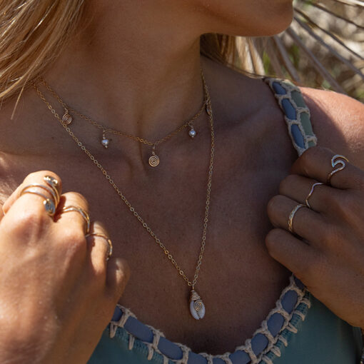 Fein, verspielt und voller Bedeutung: Die Spirals of Light Halskette vereint zarte Goldspiralen mit schimmernden Mini-Süßwasseperlen zu einem einzigartigen Blickfang an deinem Hals.
