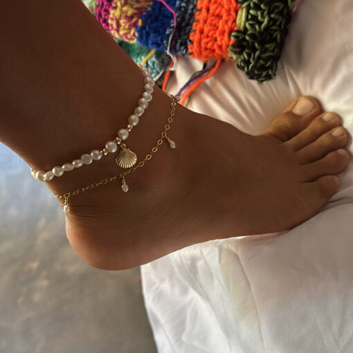 Das Salty Steps Fußkettchen erinnert an Barfußlaufen durch warmen Sand. Die Süßwasserperlen legen sich wunderschön schimmernd um deinen Fußgelenk. Als feines Highlight sitzt mittig eine goldene Muschel, die unsere Meerliebe symbolisiert und das Design für uns vollkommen macht. Salty Steps ist für alle, die das Leben barfuß genießen, das Salz auf der Haut lieben und das Meer nie ganz loslassen wollen.