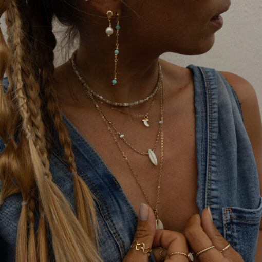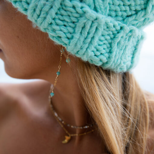 LANIKAI – bedeutet „himmliches Meer“. Einer der schönsten Strände Hawaiis trägt diesen Namen. Ein Grund mehr diese bezaubernden Ohrringe so zu nennen. Die Amazonit Steinchen haben eine unglaubliche Wirkung und machen Lanikai zu einem richtigen Hingucker an deinem Ohr.