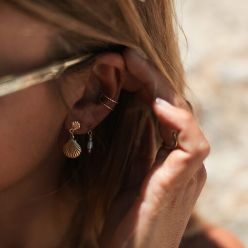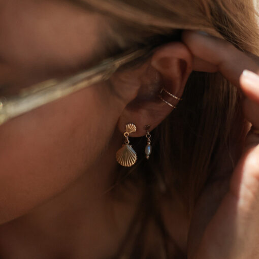 Muscheln gibt es in so vielen verschiedenen Formen und Farben. Jede einzelne ist unvergleichlich schön. Unser Ornella Ohrring hat die Form der wunderschönen Jacobs-Muschel. Sie hat eine fächerförmige, leicht gerundete Silhouette, die sich nach oben hin sanft öffnet. Ihre Oberfläche ist geprägt von regelmäßigen, strahlenförmigen Rippen, die von der Basis aus sternförmig nach außen verlaufen – wie Linien im Sand. Ein wunderschöner Ohrstecker für alle die Muscheln lieben.