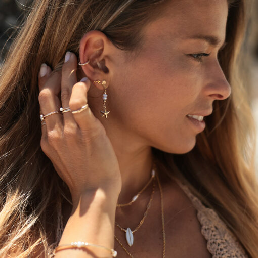 Mehr Meerliebe am Ohr geht nicht. Der Seastella Ohrring kombiniert alles was wir mit Strand und Meer verbinden. Am kleinen Muschel-Stecker hängen schimmernde Süßwasserperlen und ein kleiner, süßer Seestern. Feminin, sommerlich und verspielt und voller Details, die sofort vom Meer träumen lassen.