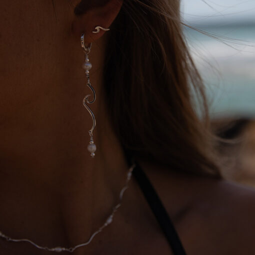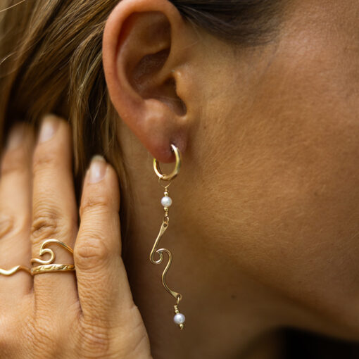 Wellen, wie vom Meer geformt. Die Wave Seeker Ohrringe sind gemacht für all die, die nie stillstehen – die immer auf der Suche sind nach der nächsten perfekten Welle und dem Gefühl von Freiheit. Während die liebevoll handgefertigten Wellen-Anhänger fein an deinem Ohr schwingen, fangen die Süßwasserperlen das Licht des Meeres ein. Schmuck für deinen inneren Kompass, der dich zu deiner nächsten perfekten Welle leitet.