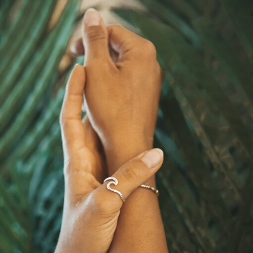 PACIFIC WAVE ist nach unserem größten und tiefsten Ozean unseres Planeten benannt – dem Pazifik. Er grenzt an alle Ozeane und führt sie zusammen. In unserem PACIFIC WAVE vereinen sich auf wunderschöne Art und Weise eine gehämmerte Seite der Welle mit einer glatten. Er ist der Beweis, das zwei unterschiedliche Eigenschaften wunderschön harmonieren können und zusammen einen sehr besonderen und einzigartigen look kreieren können.