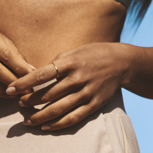 Dieser kleine Ring fasziniert durch die gehämmerte Struktur, die ihn außergewöhnlich macht. Die geometrische Struktur verbindet sich harmonisch mit dem Kreis des Ringes, verschmilzt wird eins, wie Wassertropfen sich in Flüsse, in Meere auflösen …