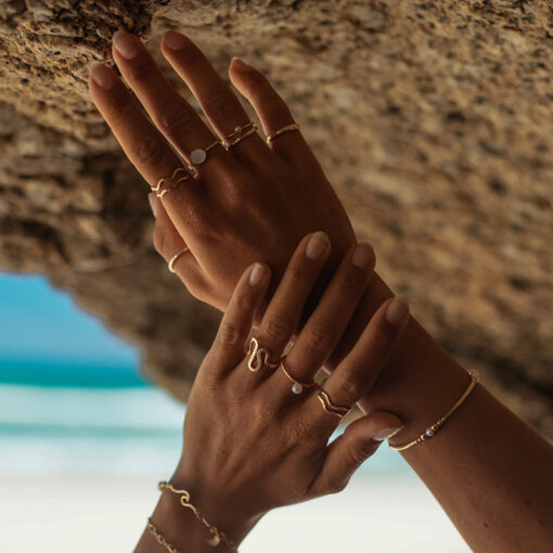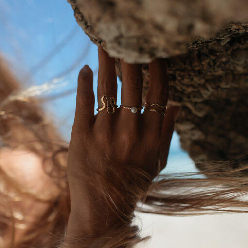 Fein und glitzernd schmiegt sich der schmale Ring sanft um den Finger. Gekrönt wird er von einer kleinen Süßwasserperle – wie ein vom Ozean angespülter Schatz, zart und einzigartig. Ein Hauch Meer, eingefangen in einem zeitlosen, eleganten Design.